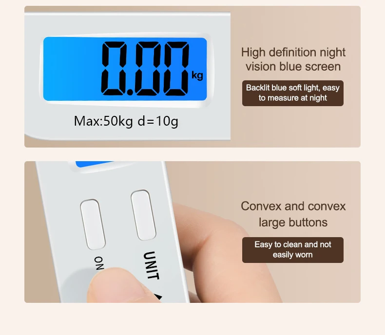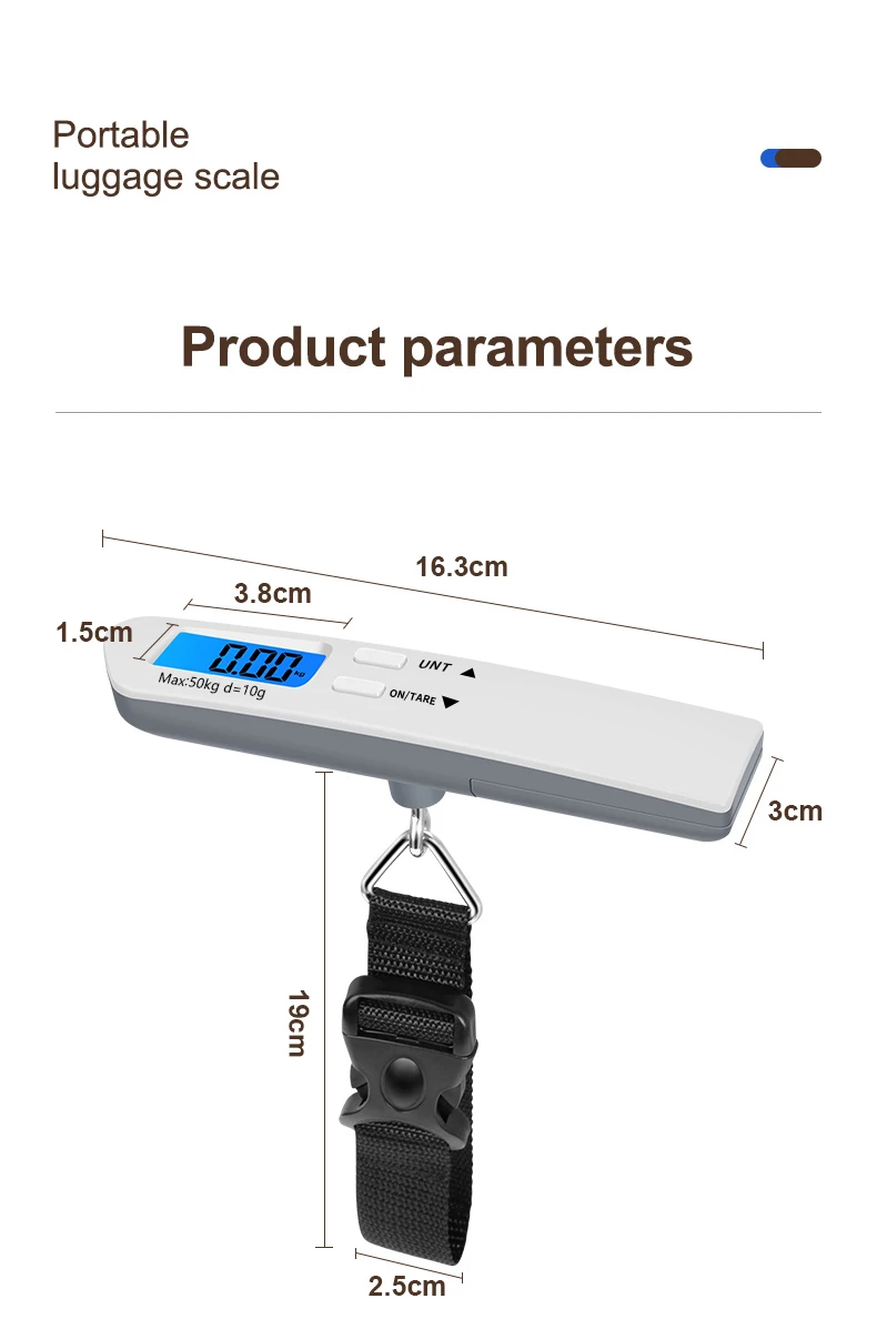 50kg/110lbs Portable Luggage Scale High Precision Blue Backlight Travel Digital Hanging Scales LCD Display Electronic Fishing