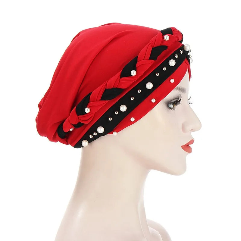 Indian Muslim Women Two Color Hijab Milk Silk Chemical Hat Braided Bead Hijab Islamic Hijab Ladies Bicolor pearl Baotou Cap