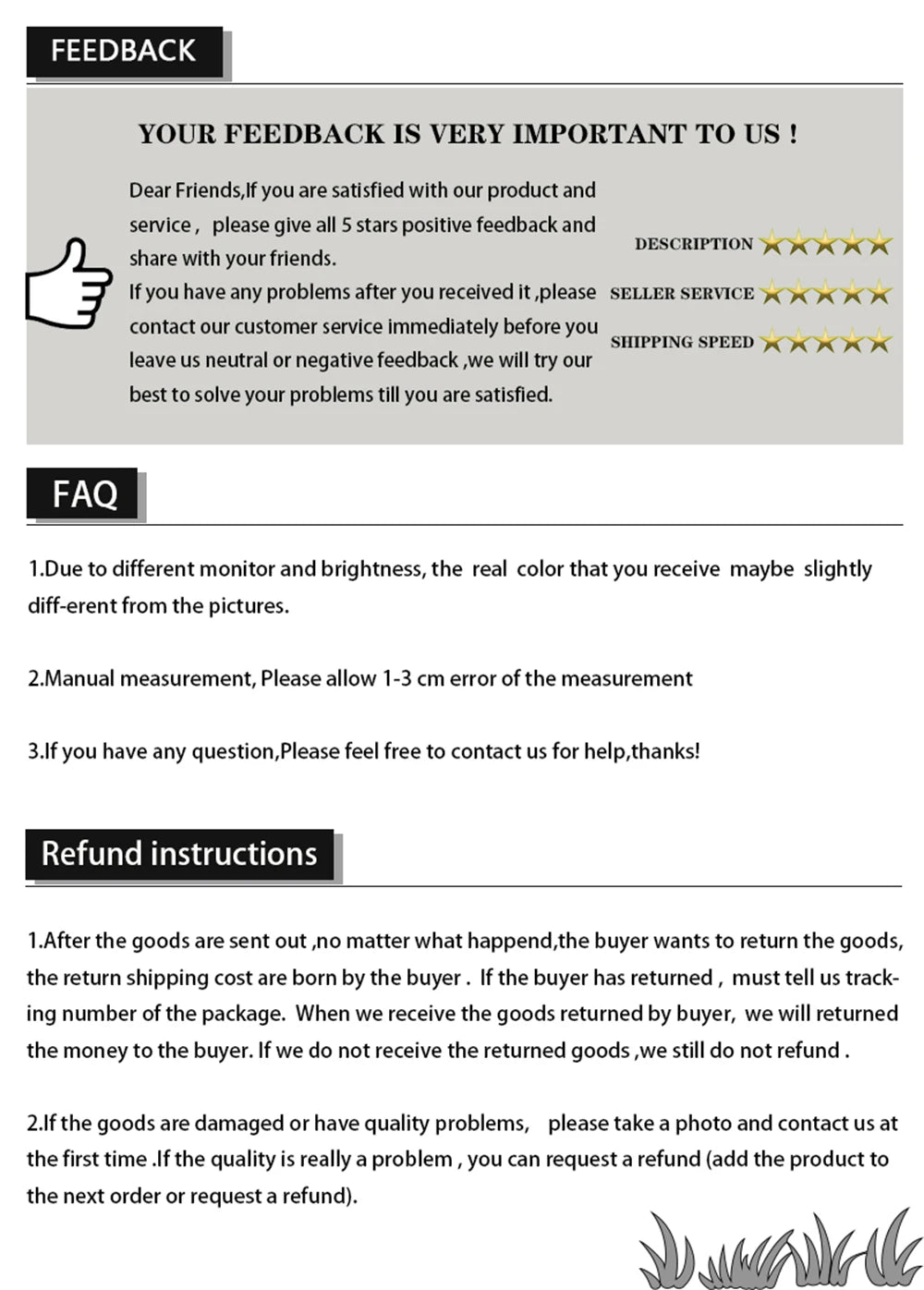 Please don't leave any negative feedback and open dispute before contact with us.