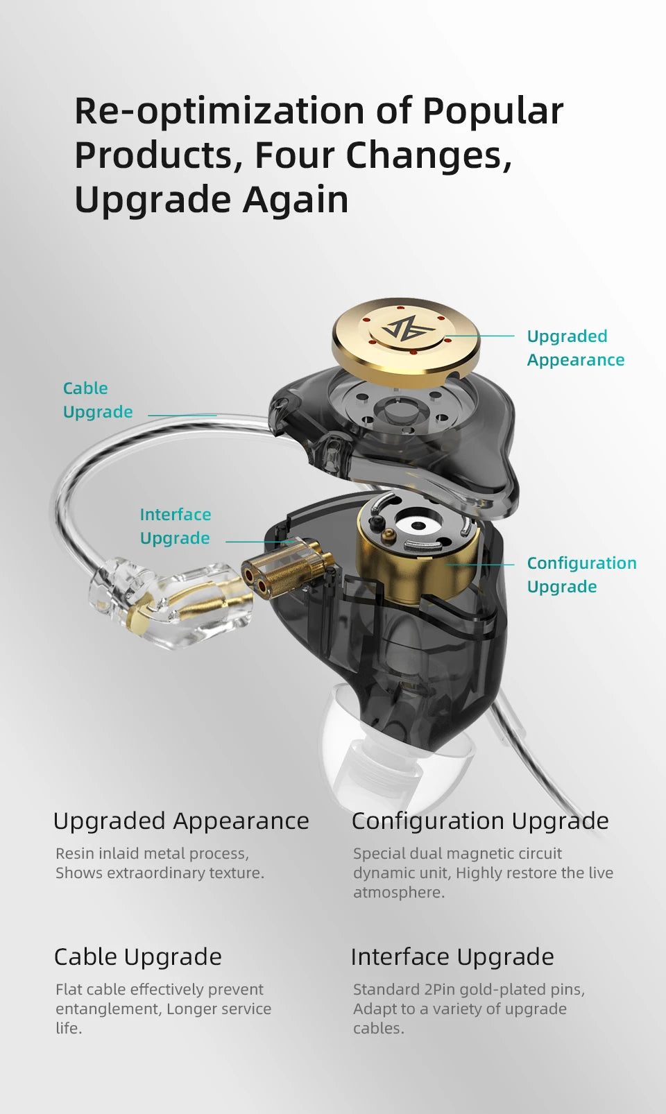KZ EDX PRO Dual Magnetic Circuit Dynamic Drive In Ear Earphone HIFI DJ Monitor Earphones Earbud Sport Noise Cancelling Headset